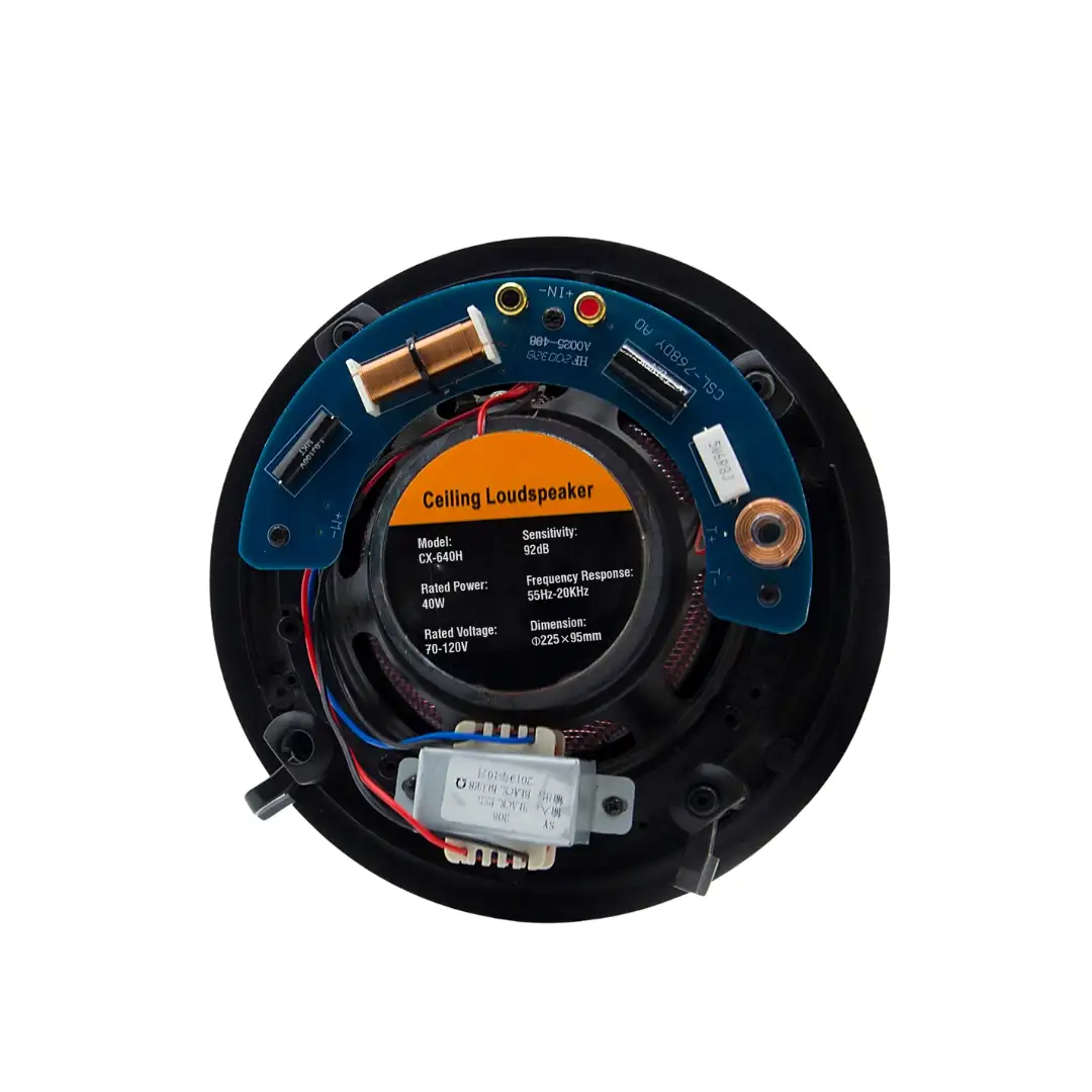 The CX-640H is a professional-grade ceiling speaker built with a 6.5-inch woofer and a silk diaphragm coaxial tweeter, delivering rich bass and crystal-clear highs. Ideal for hotels, conference halls, restaurants, and premium sound systems.