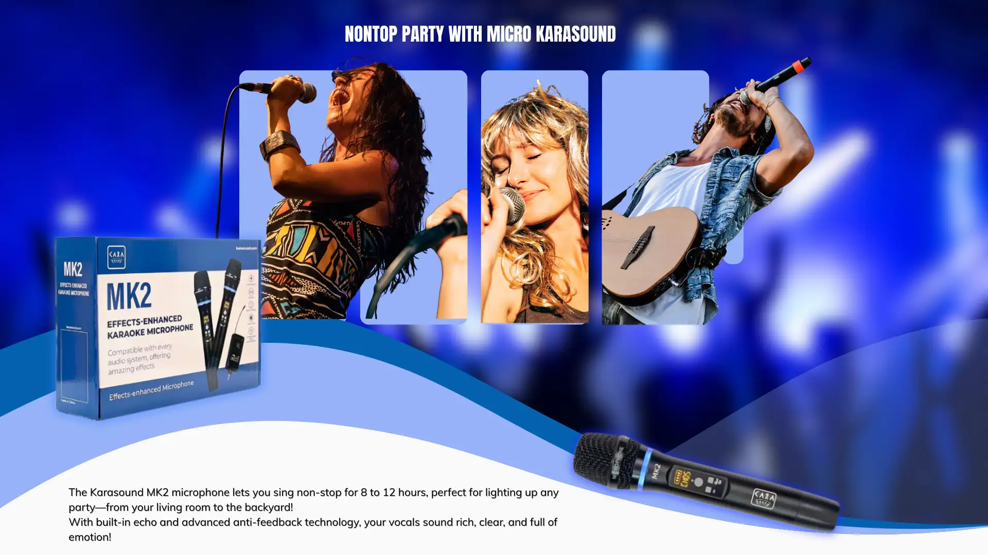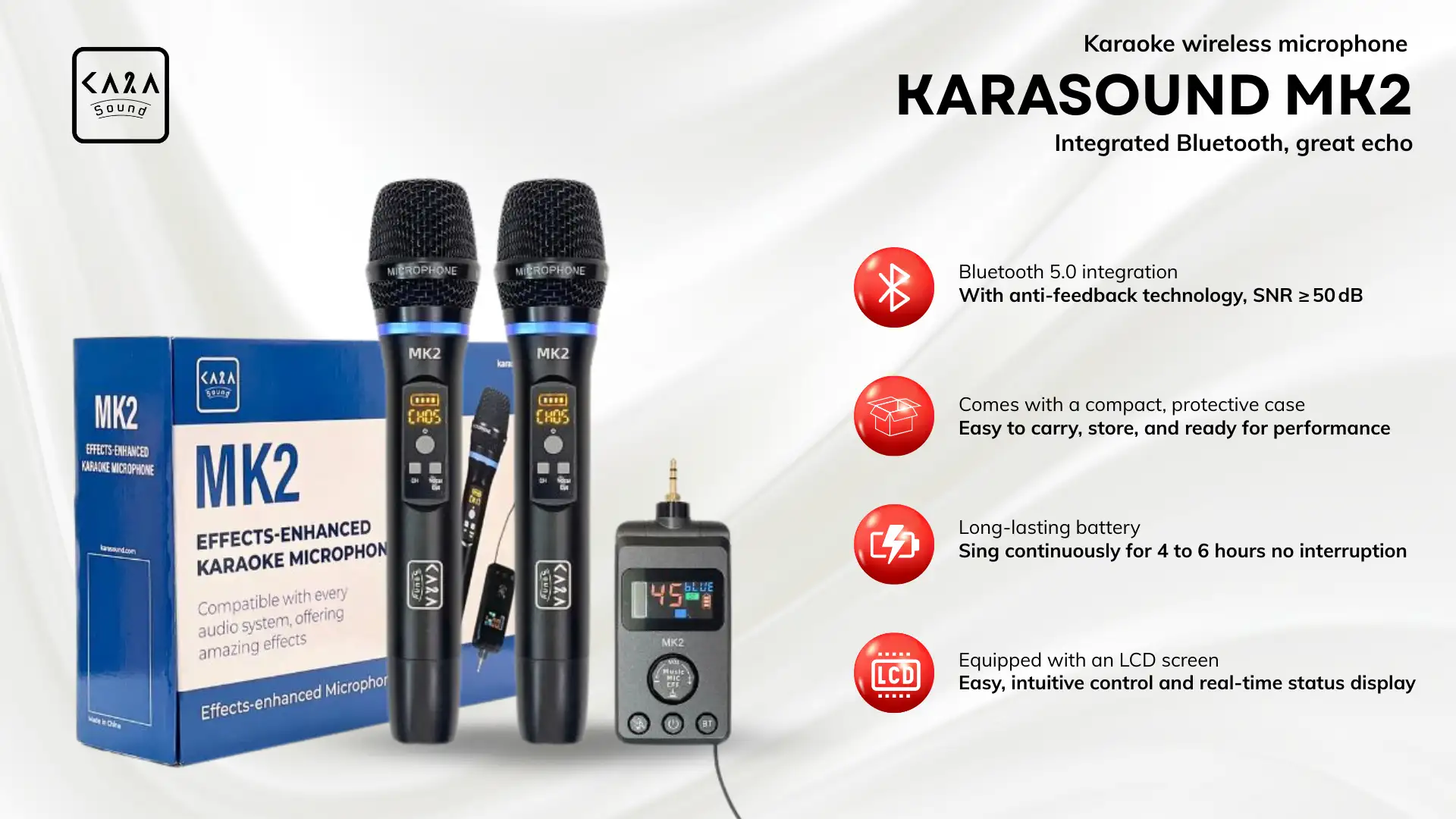 The Karasound MK2 is here to change that. Designed for passionate performers, this premium microphone with built-in echo effect transforms your karaoke sessions into a true stage experience. Whether you’re singing for fun or streaming to fans, MK2 brings rich, vibrant sound with a touch of studio magic.